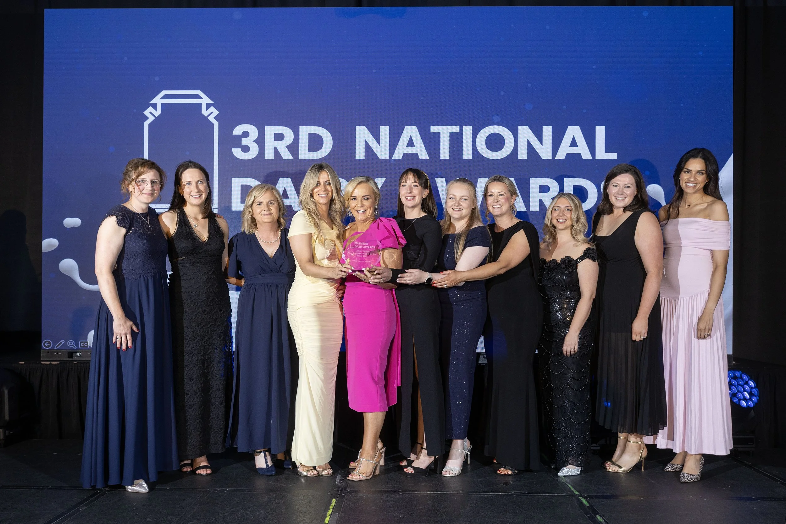 Ursula Kelly of Cormac Tagging (5th from left) presenting the Cormac Tagging Discussion / Support Group of the year award to Dairy Women Ireland.