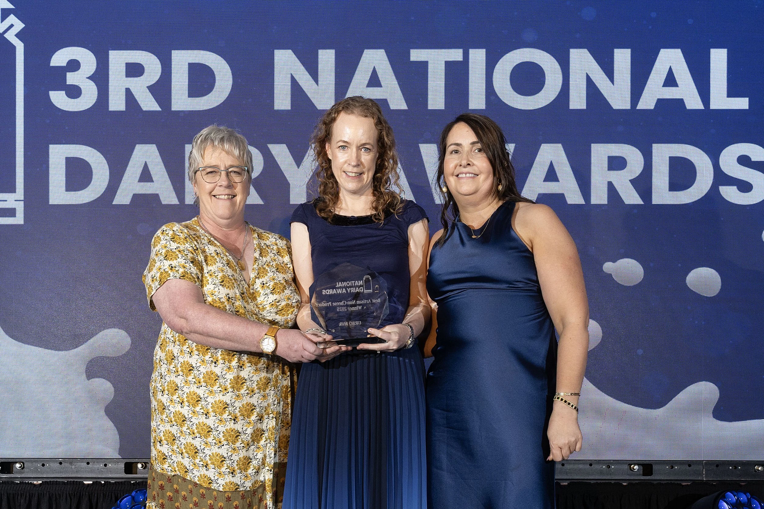 Member of the judging panel, Catherine Keena of Teagasc (left), presents the award for Artisan Dairy Product of the Year (non-cheese) to URBÓ Milk.