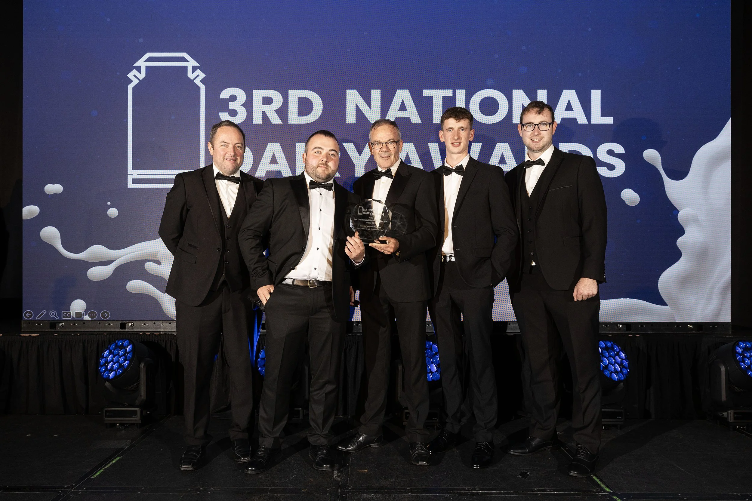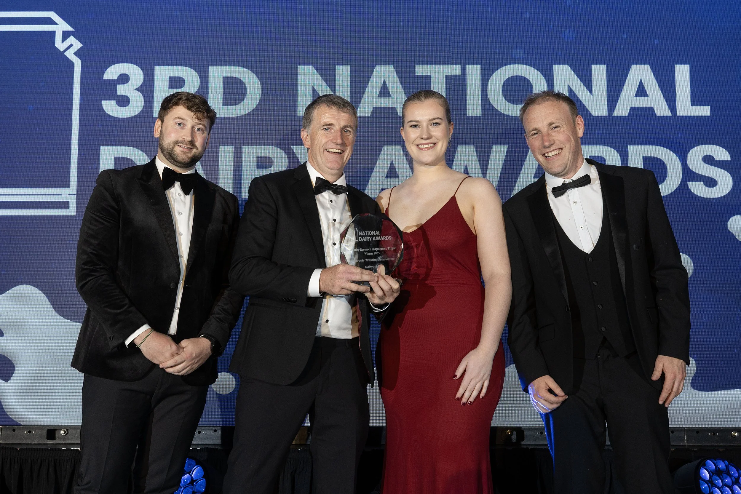 Member of the judging panel, Kevin Maher of Dairy sustainability Ireland (left) presents the award for Best Dairy Research Programme / Project to the team from Dairygold for their ‘Grassroots Training Programme’.