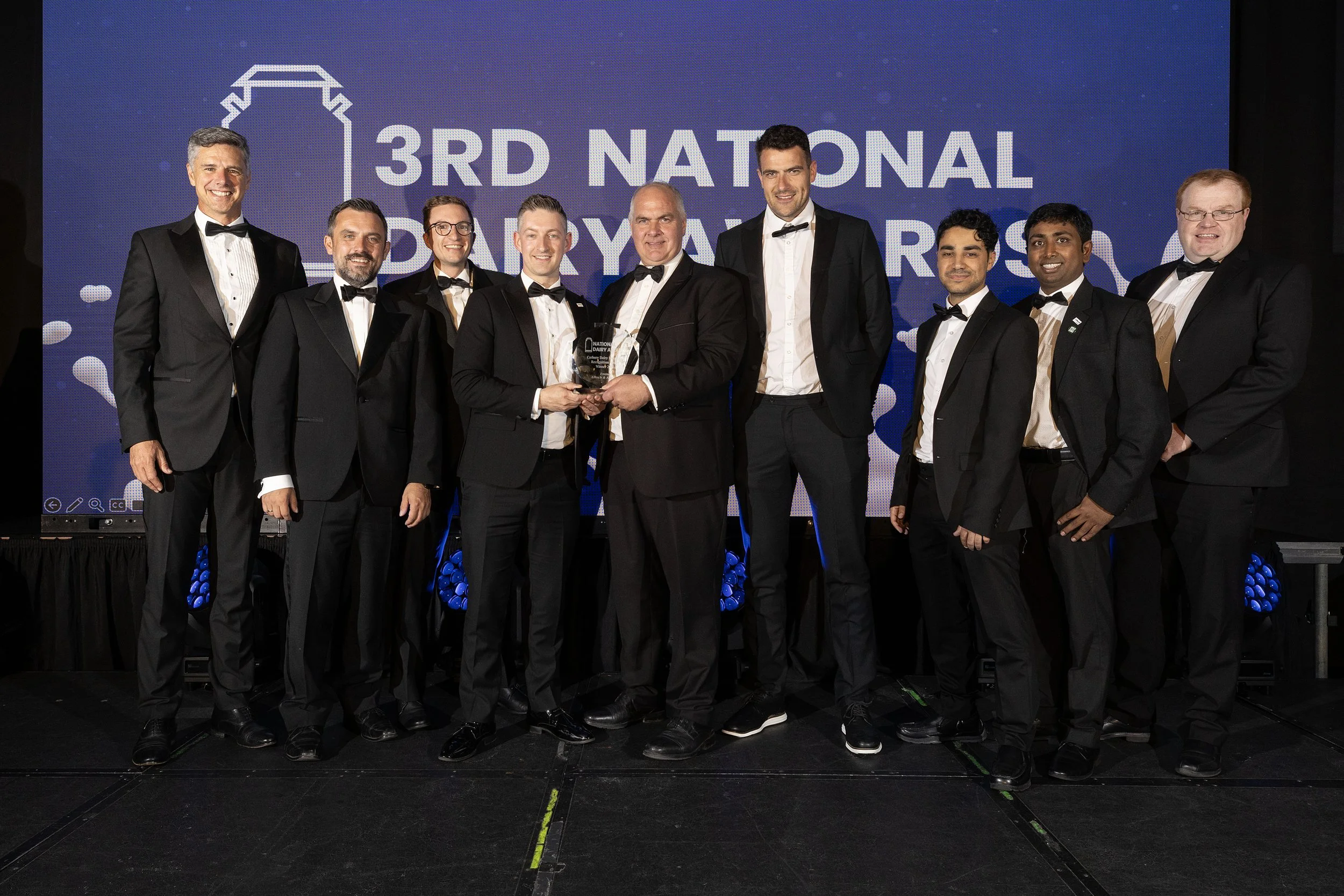 Vincent O’Donovan, Carbery Group (middle) presents the Carbery Group Dairy Innovation Recognition award to ‘Eminex’ and the teams from Alltech and Alzchem.
